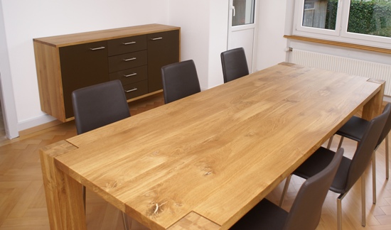 Unsere Massivholztische fertigen wir individuell für Sie aus heimischen / europäischen Hölzer. Jeder Tisch ist ein Unikat. Nach Mass für Sie gefertigt. Sie wählen Modell, Holzart und Grösse und unsere Möbelschreiner bauen mit dem nötigen Flair für die Massivholzverarbeitung Ihren Traumtisch.